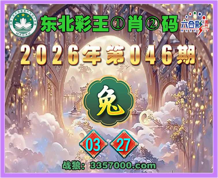 046期: 🐓《东北彩王》 🐓①肖②码🐓【】【03.27】开:兔03准上榜高手
