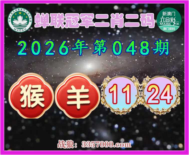 048期:【蝉联冠军】 🏃‍♀️二肖二码🏃‍♀️【猴】【11.24】开:羊24